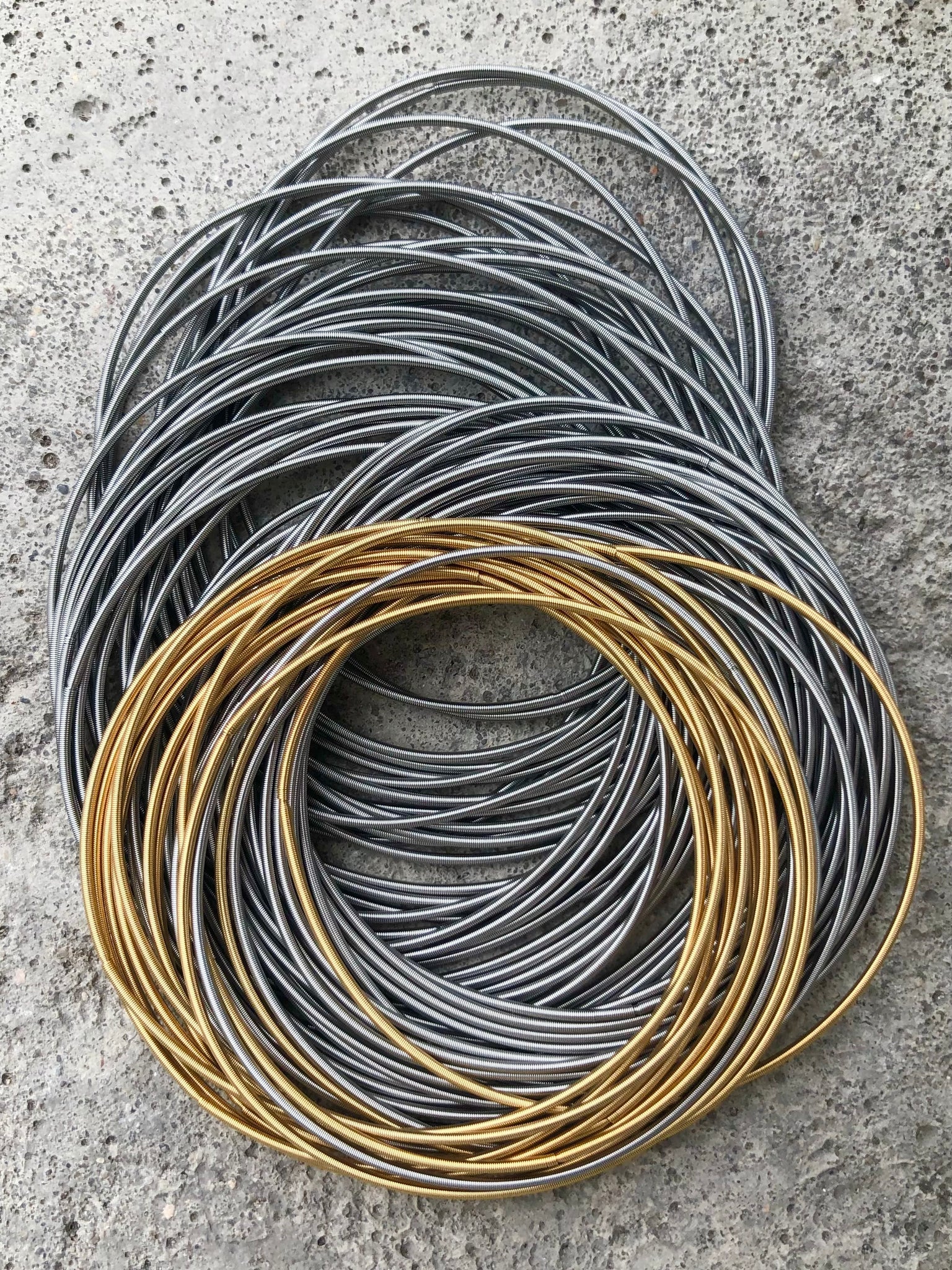 Es besteht aus 80 reinen Edelstahldrähten, davon 20 goldbeschichtete, die zusammen getragen oder mit geliebten Menschen geteilt werden können.